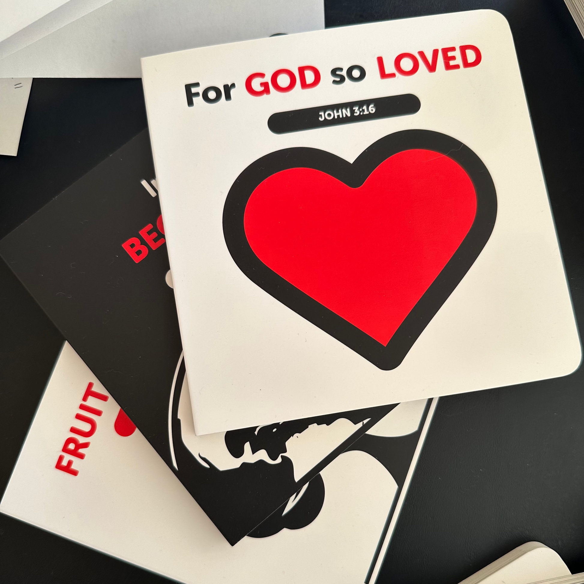 Get the full set of all 3 books to take littles through how we got here (In the Beginning | Genesis 1-2), why Jesus came (For God so Loved | John 3:16-17) and how the spirit moves in our live today (Fruit of the Spirit | Galatians 5:22).